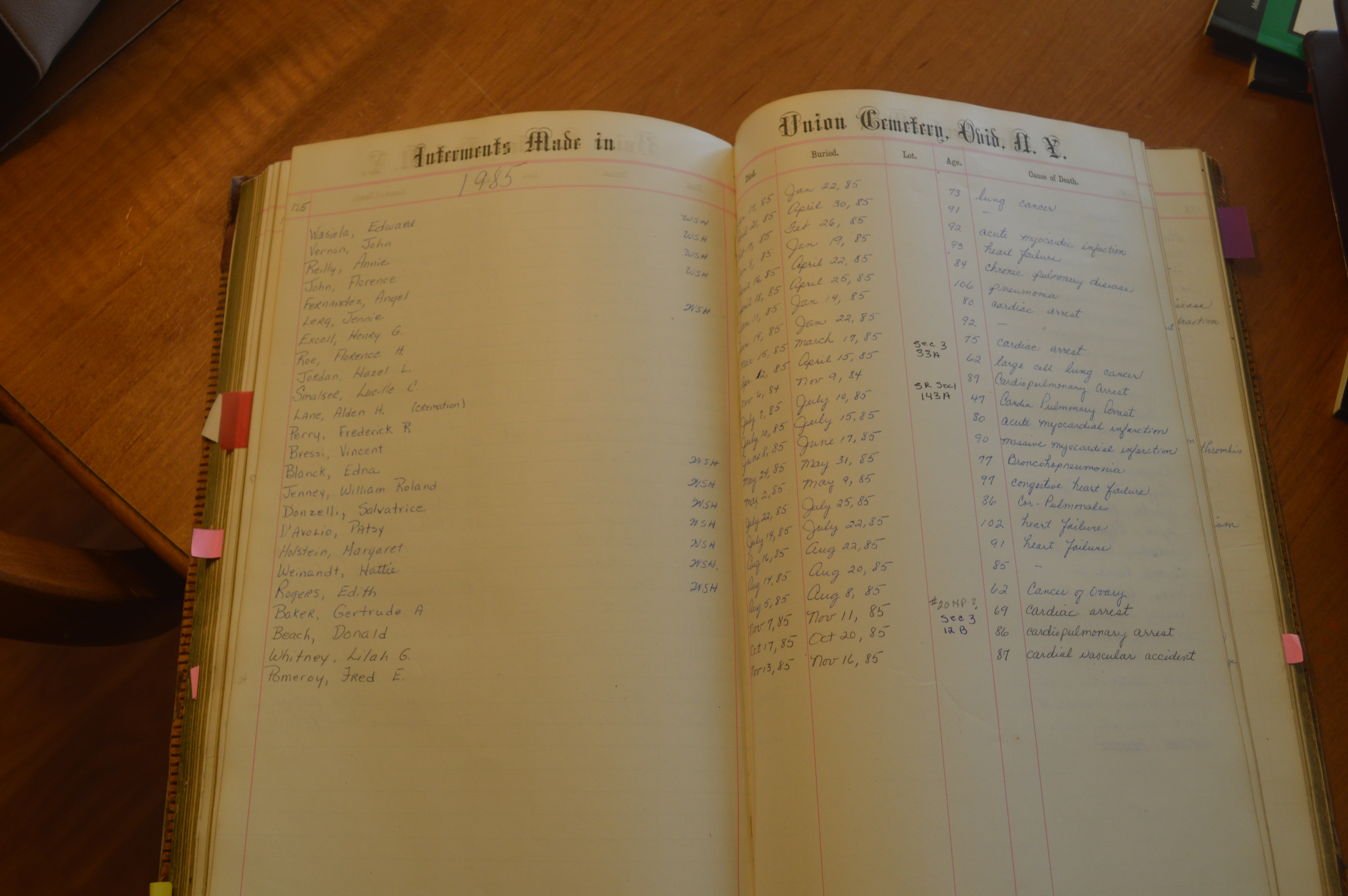 Ovid Union Cemetery Burial Book