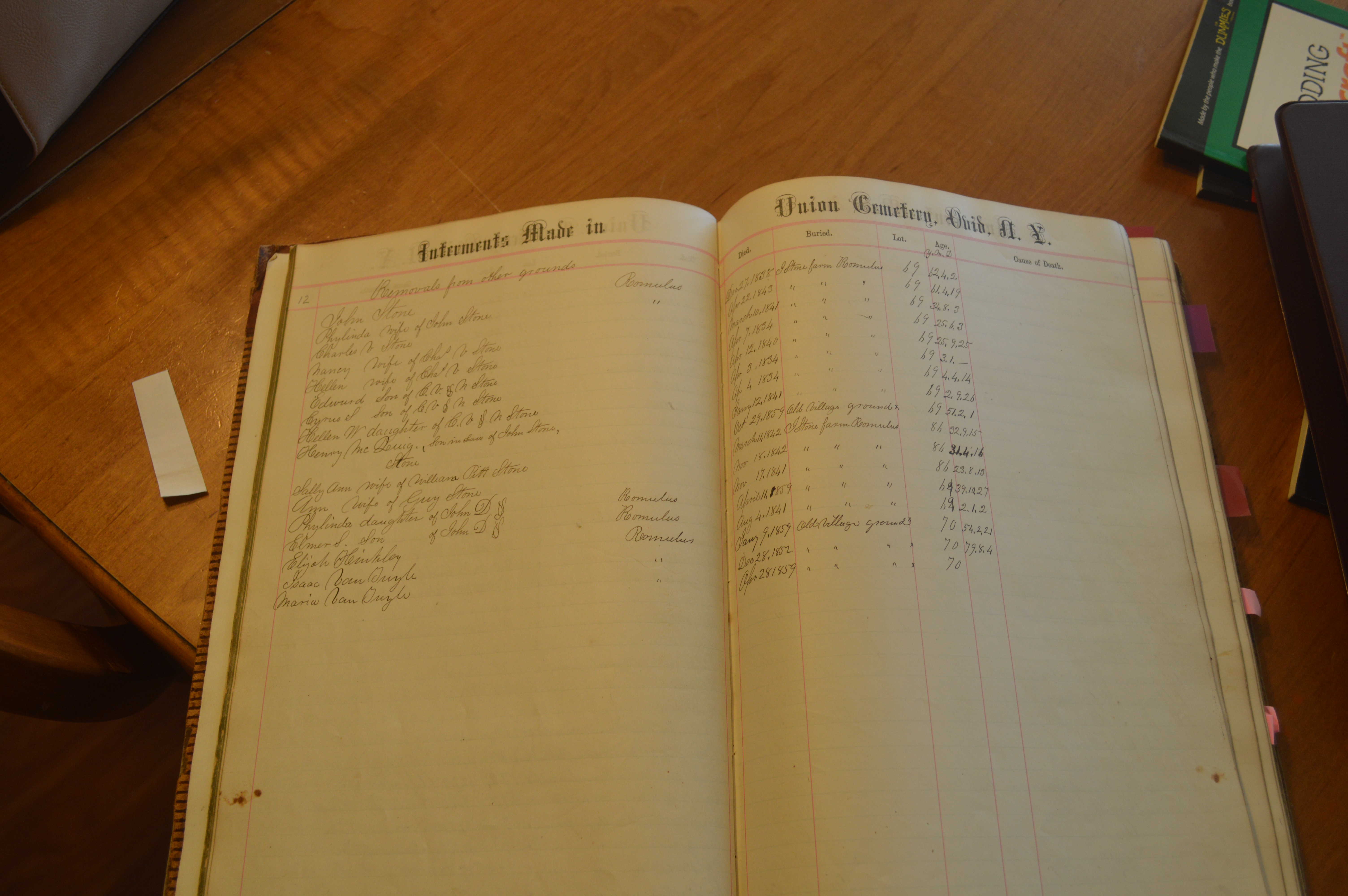 Ovid Union Cemetery Burial Book