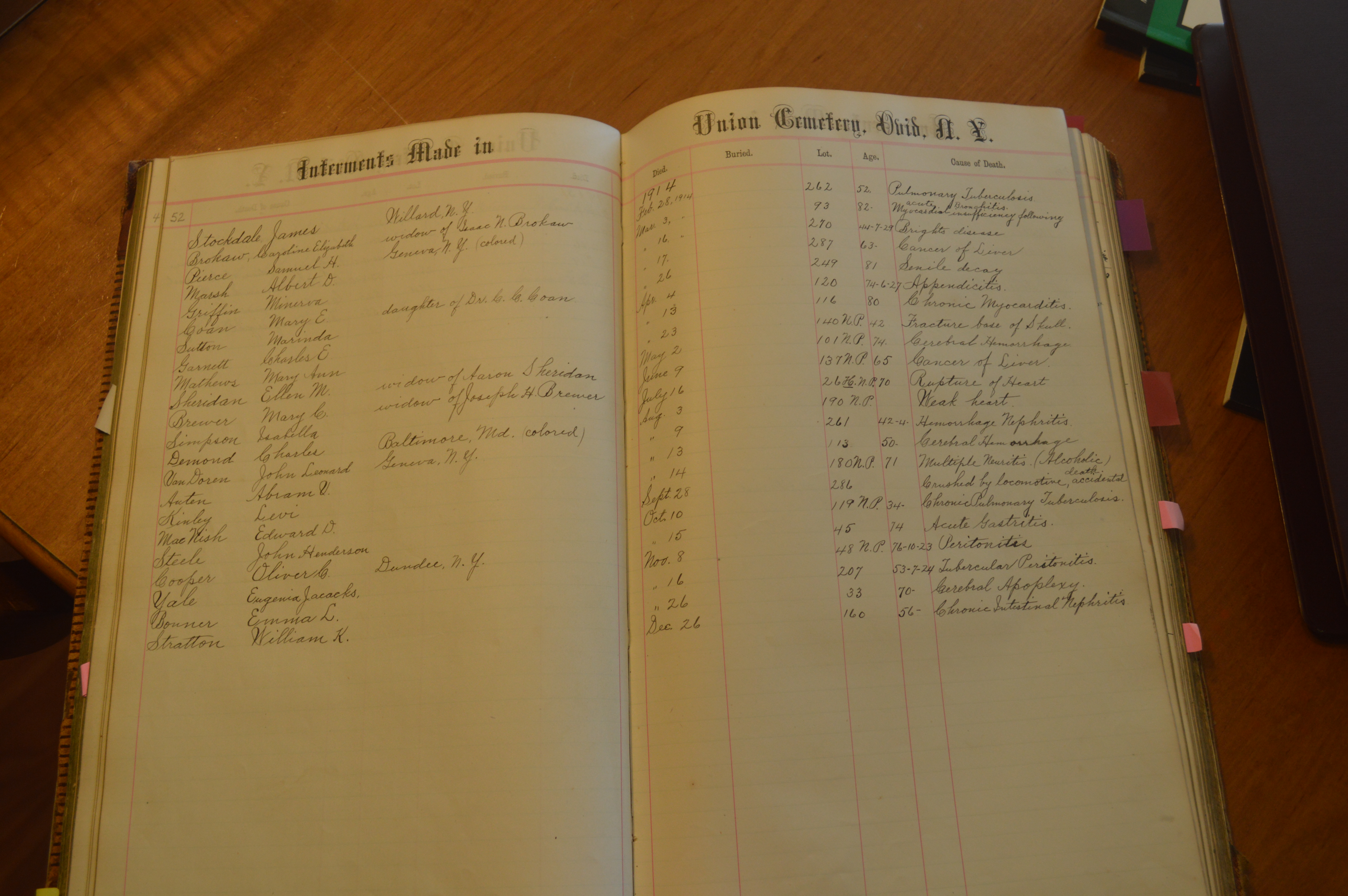 Ovid Union Cemetery Burial Book