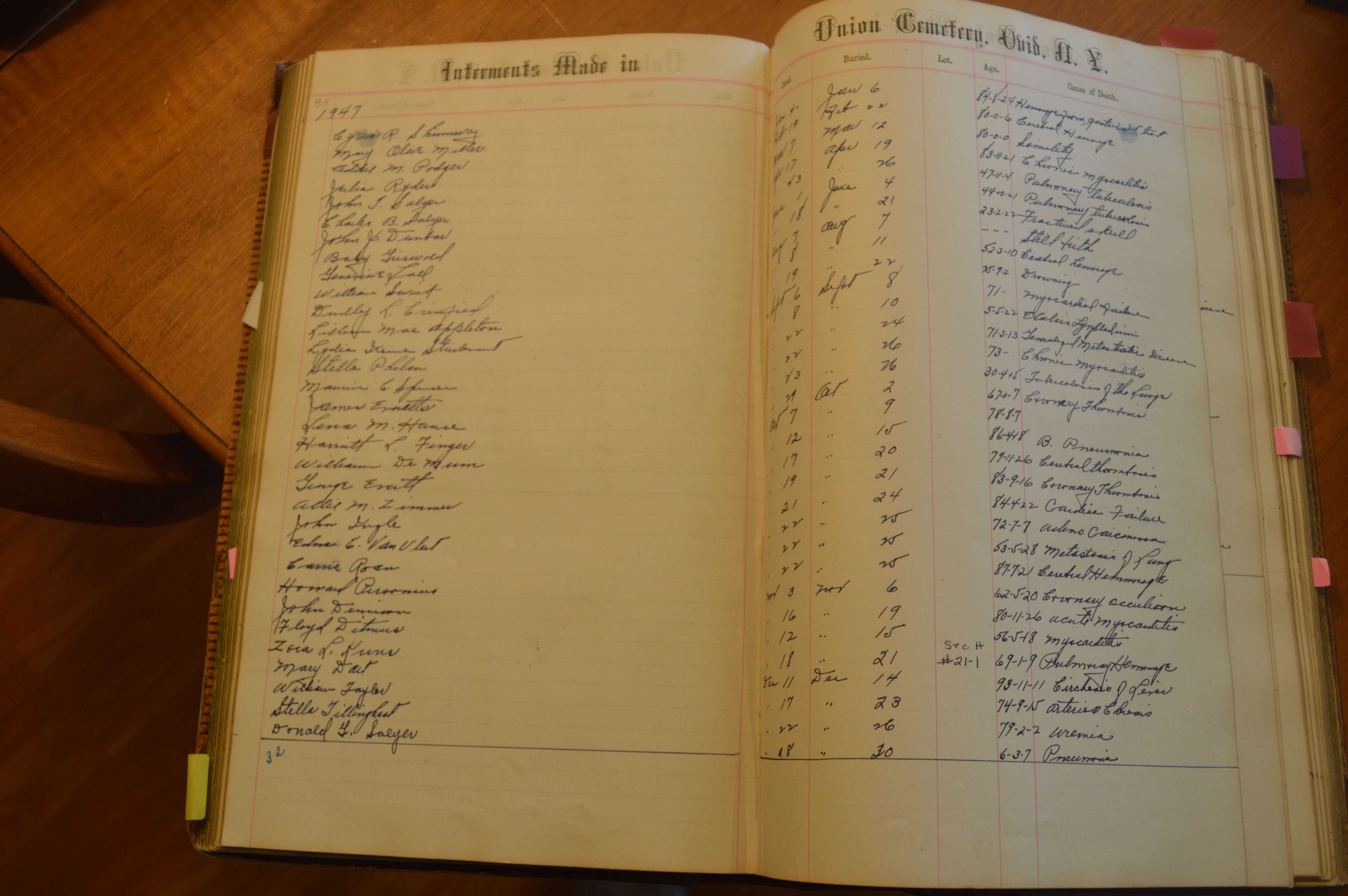 Ovid Union Cemetery Burial Book