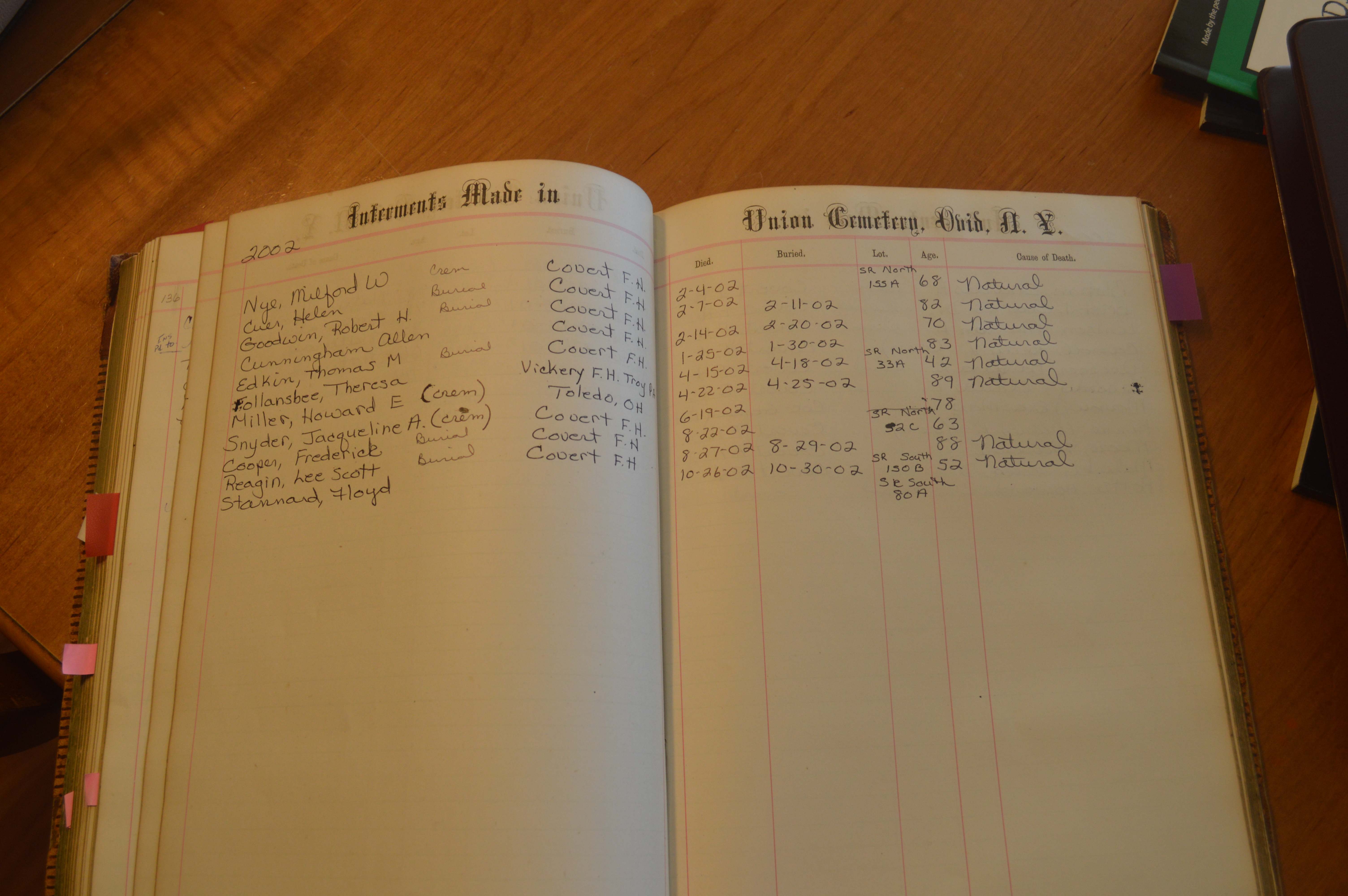 Ovid Union Cemetery Burial Book