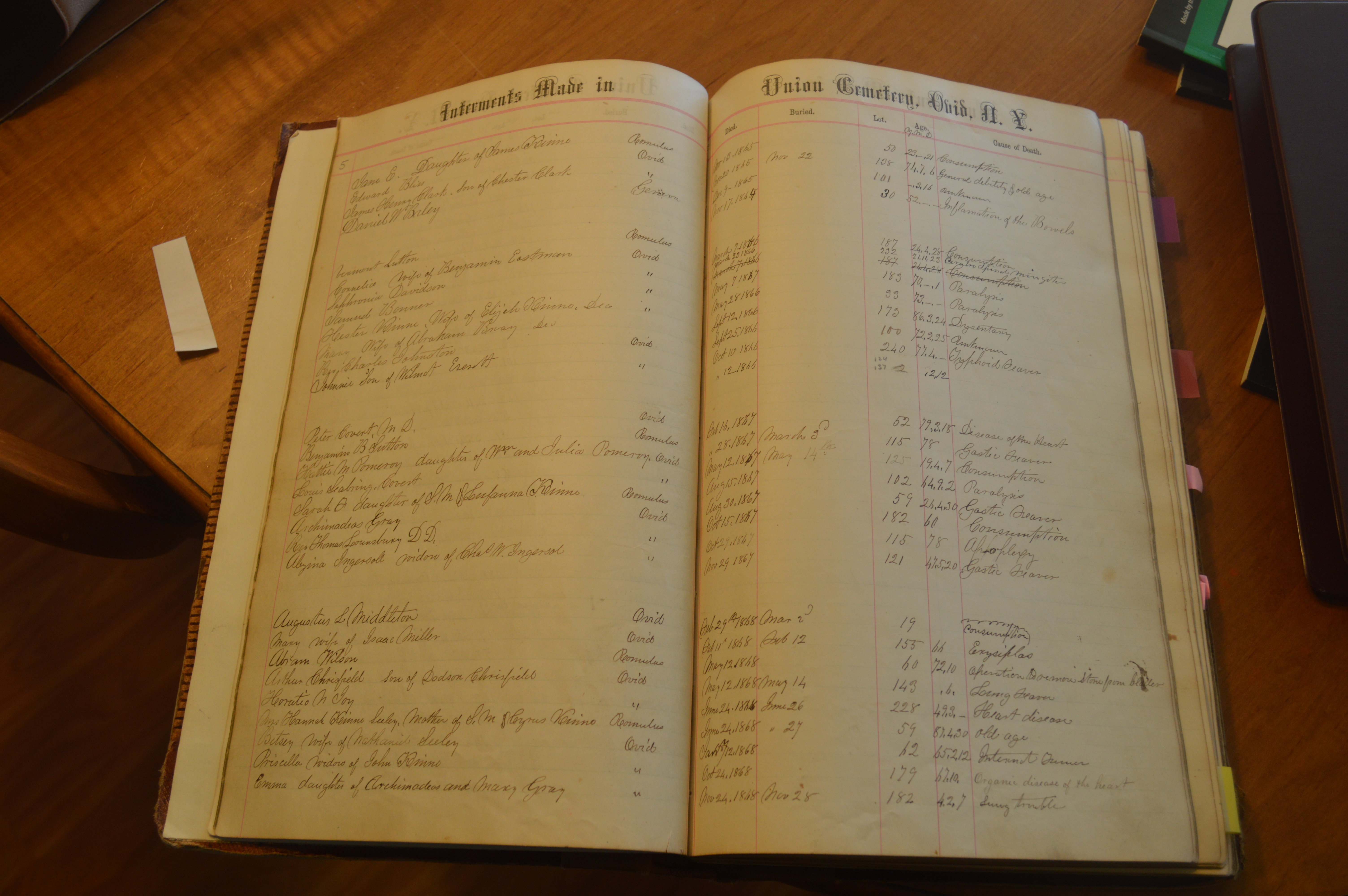 Ovid Union Cemetery Burial Book