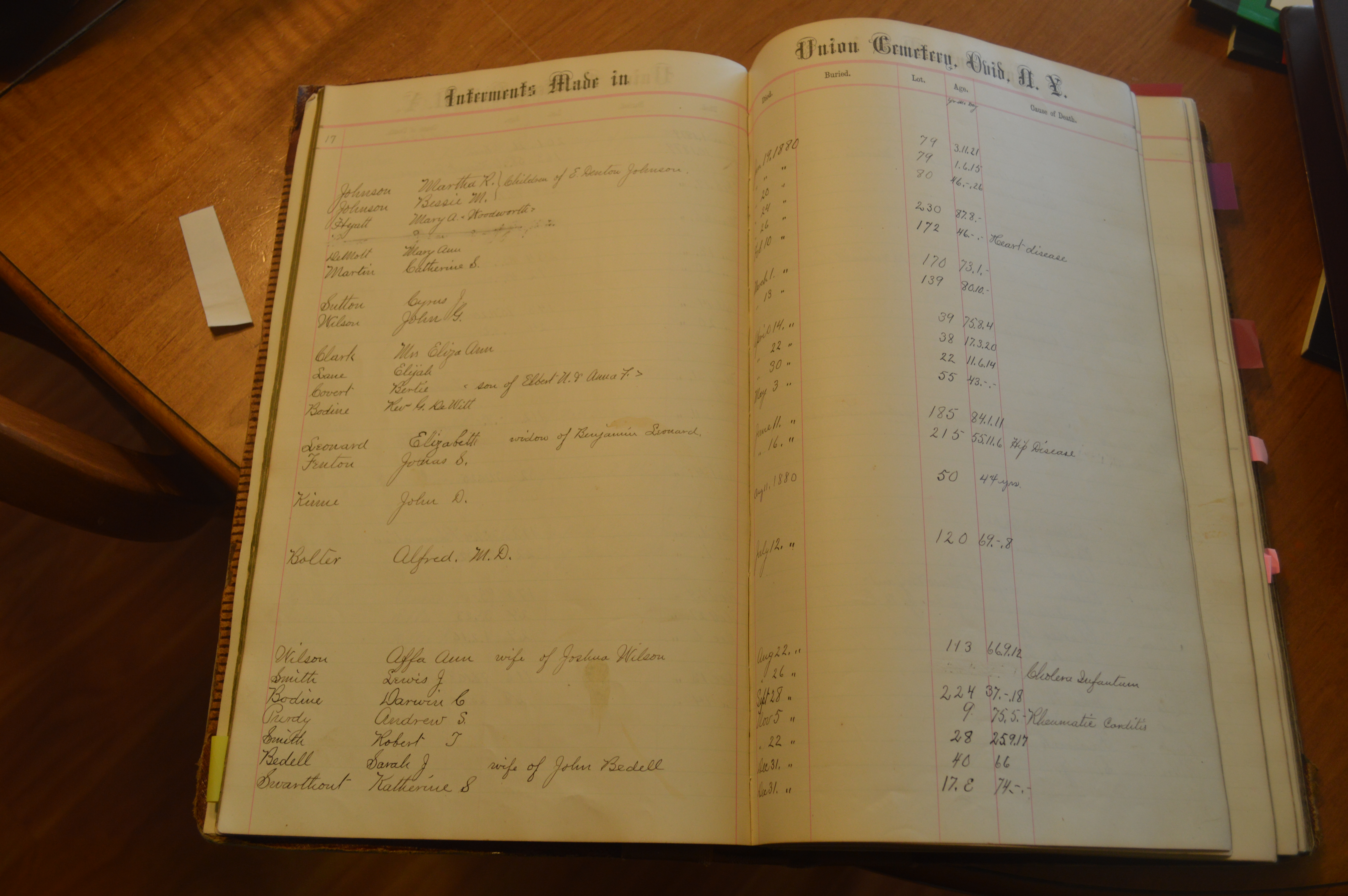 Ovid Union Cemetery Burial Book
