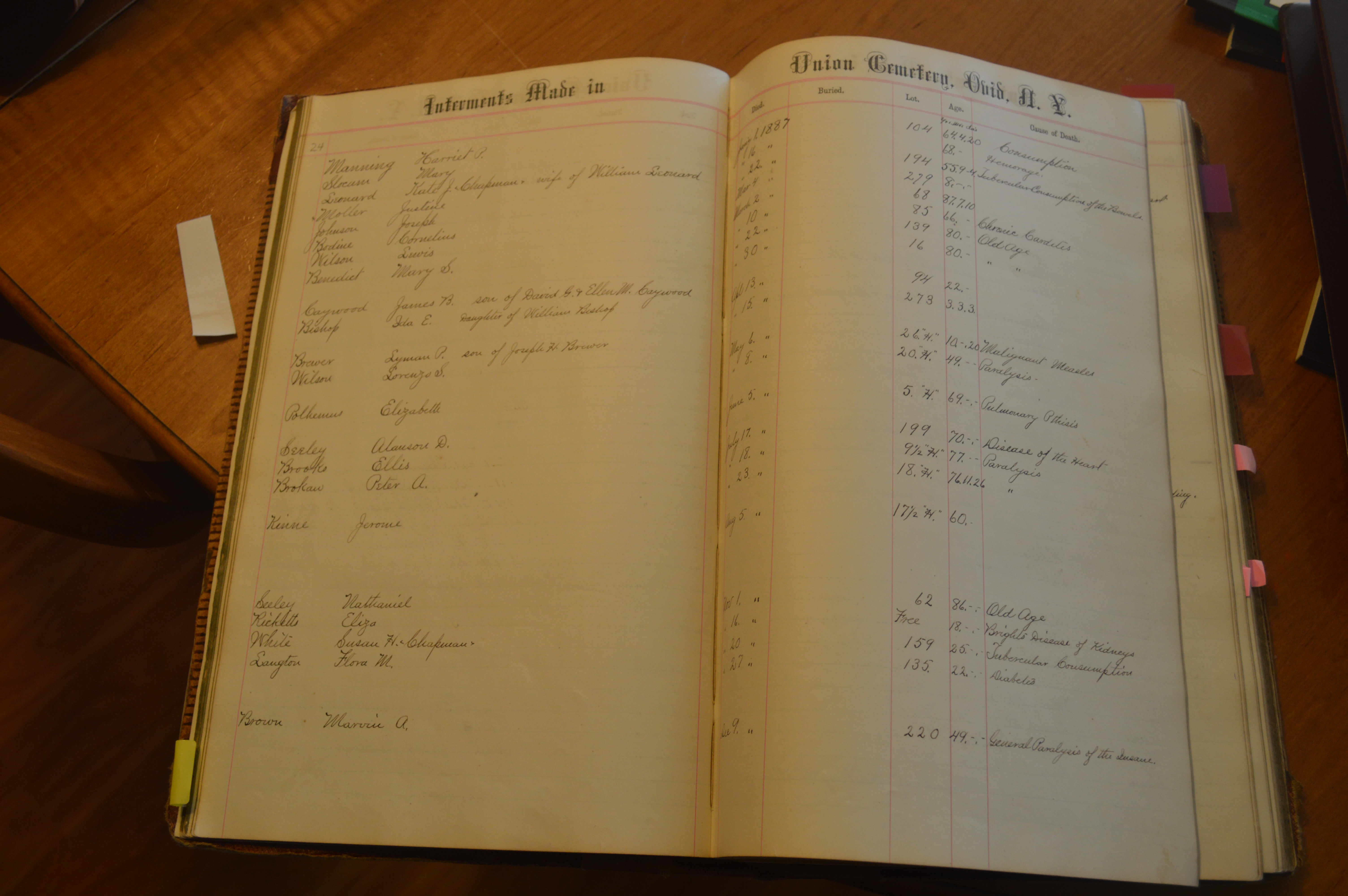 Ovid Union Cemetery Burial Book