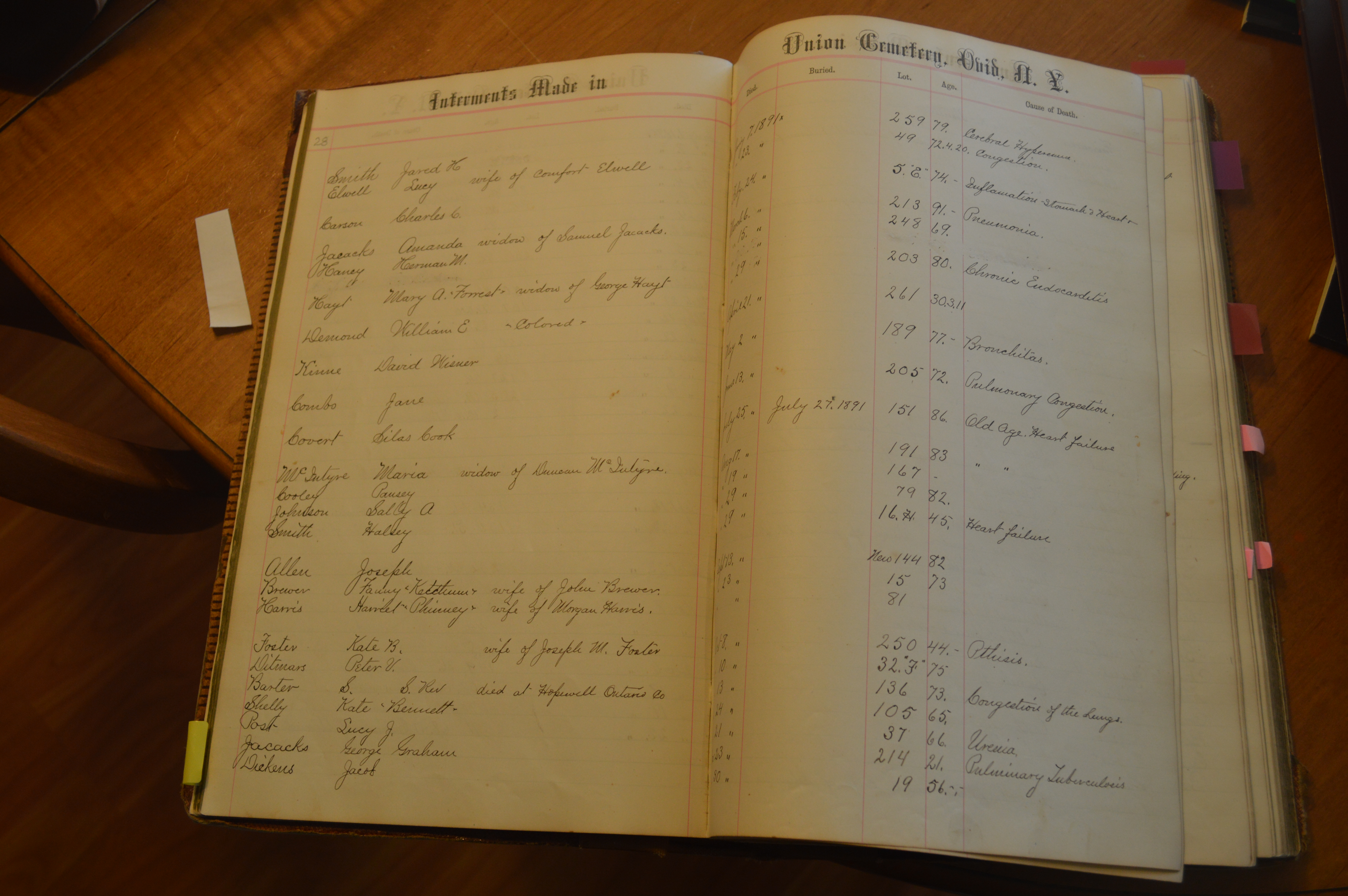 Ovid Union Cemetery Burial Book