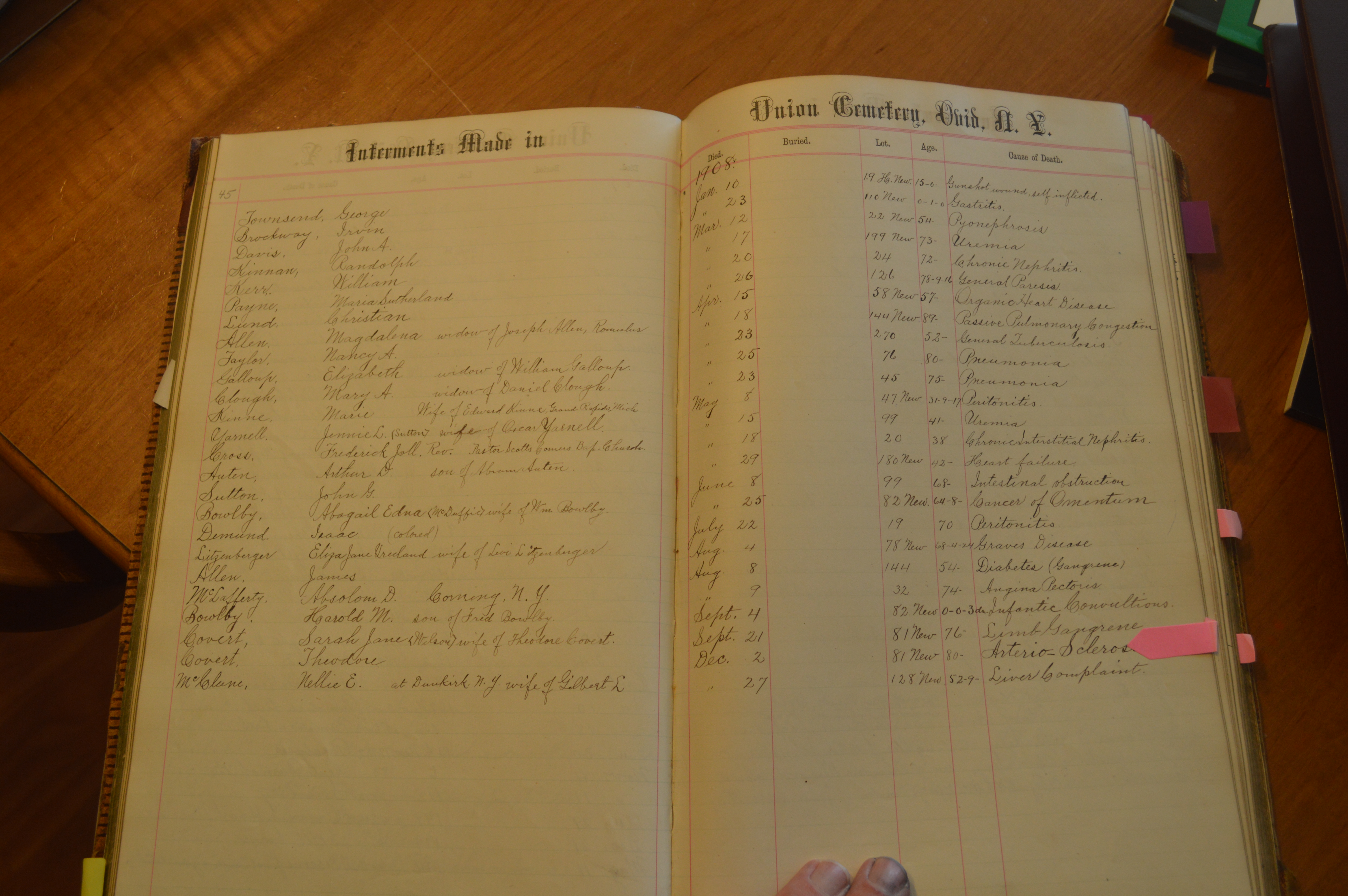 Ovid Union Cemetery Burial Book