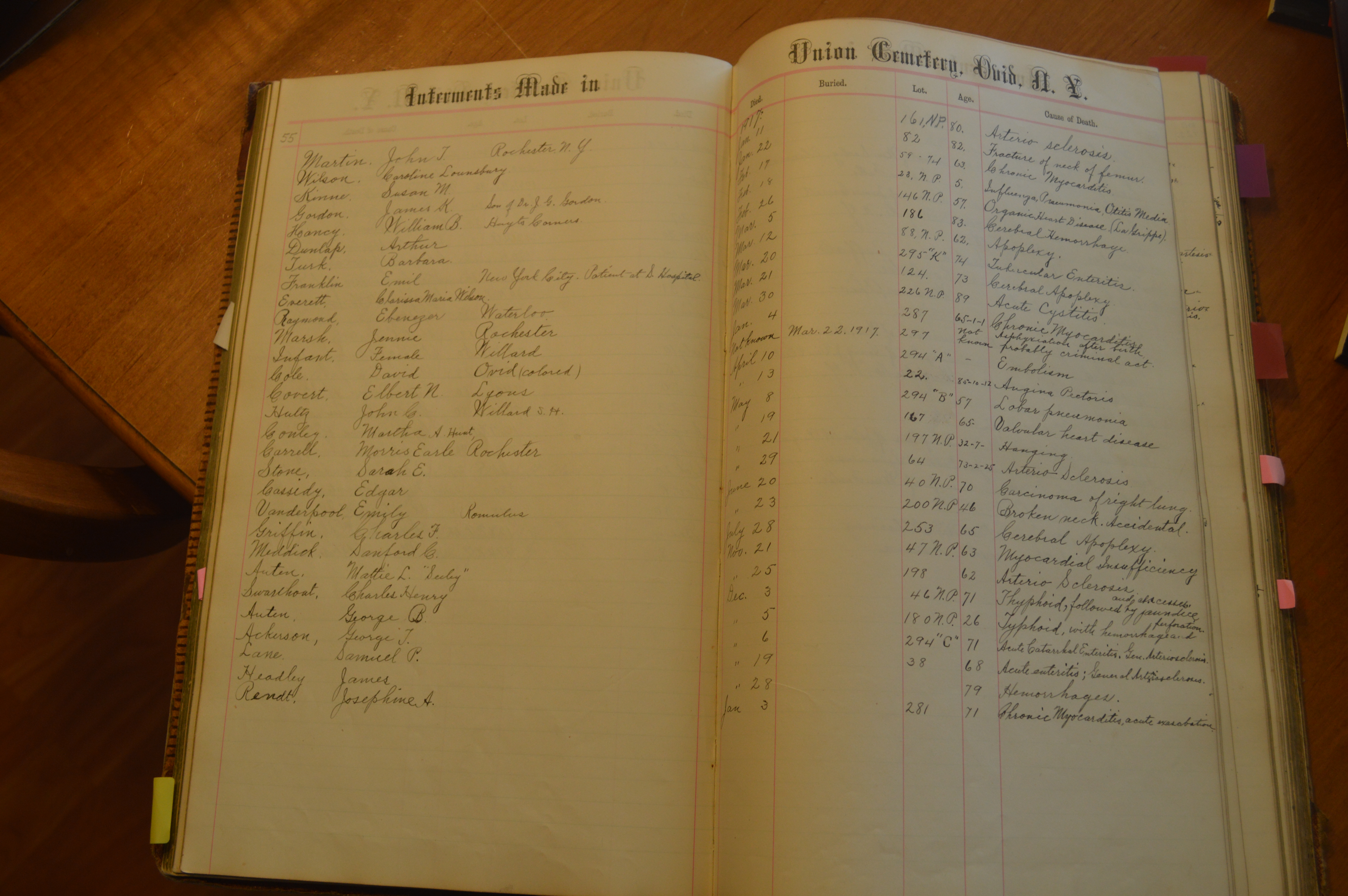 Ovid Union Cemetery Burial Book
