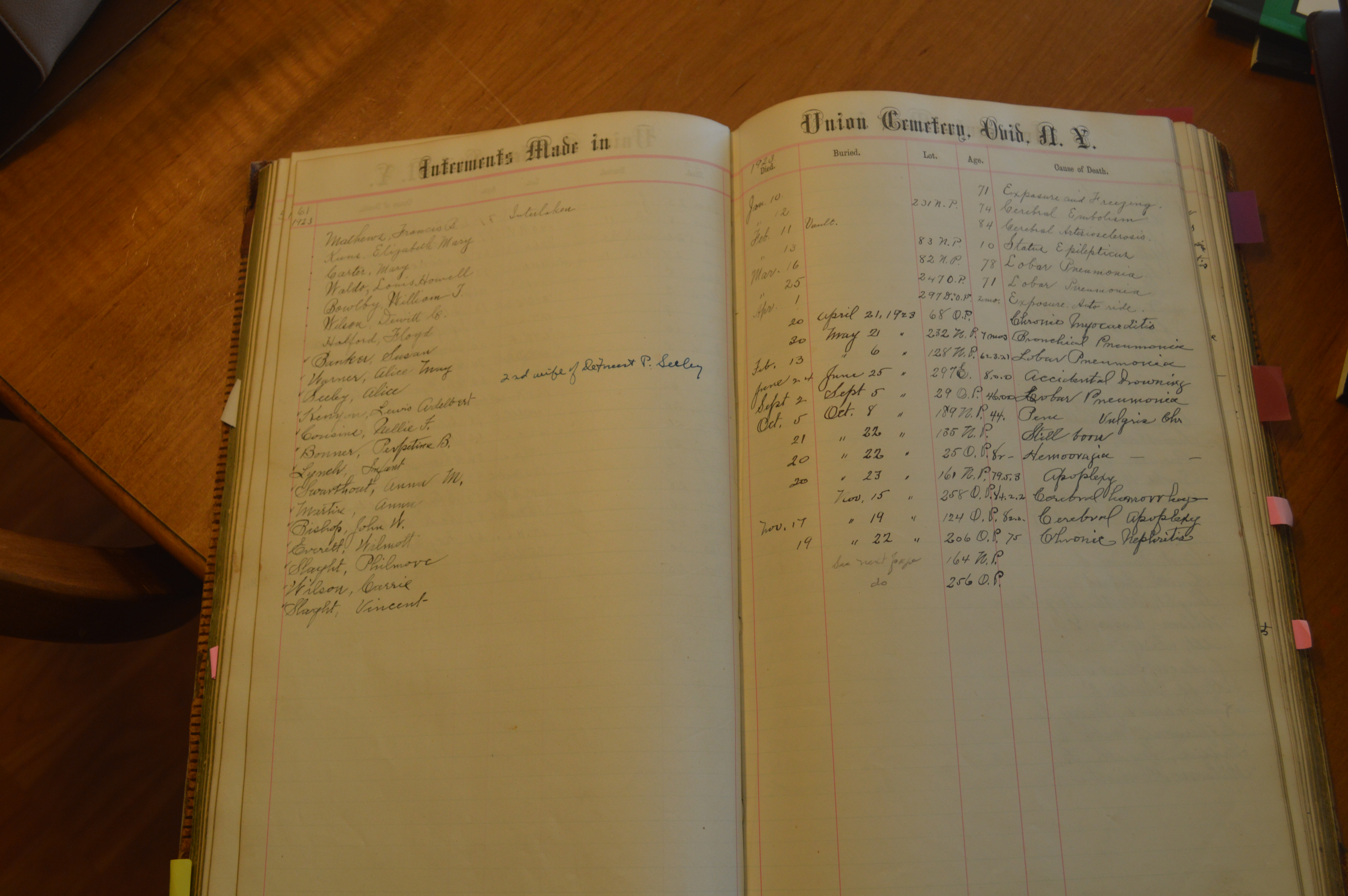 Ovid Union Cemetery Burial Book