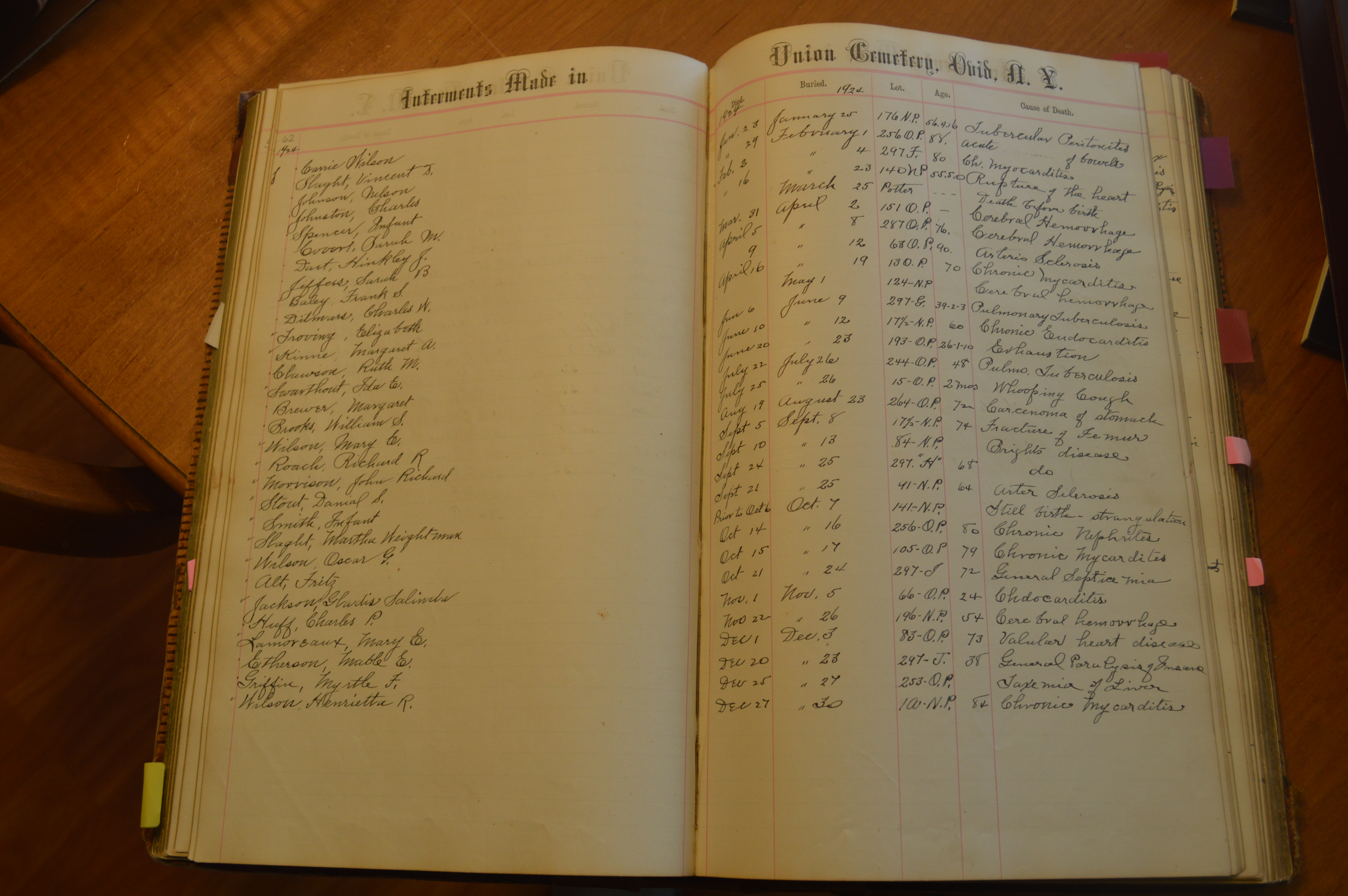 Ovid Union Cemetery Burial Book