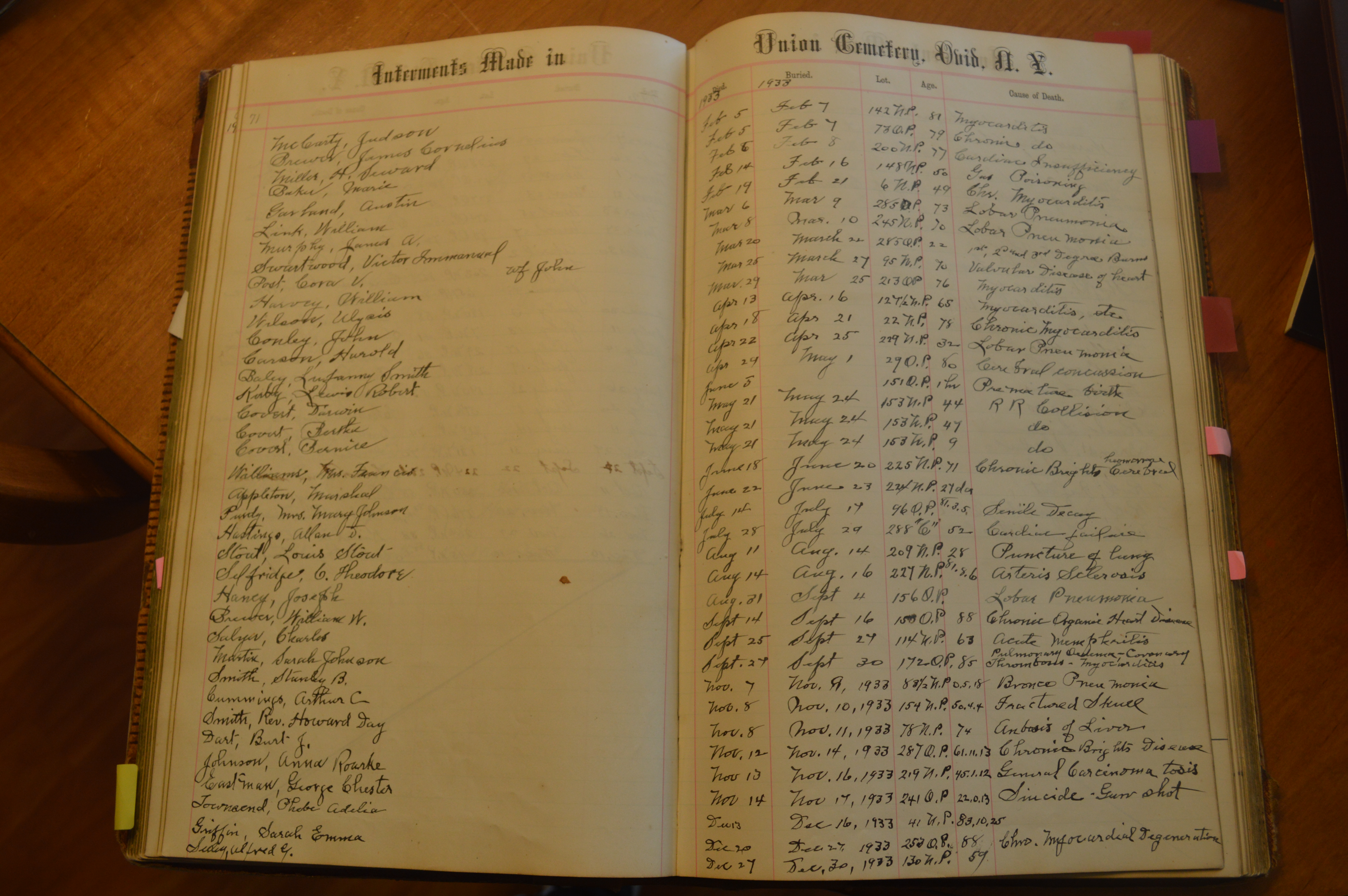 Ovid Union Cemetery Burial Book