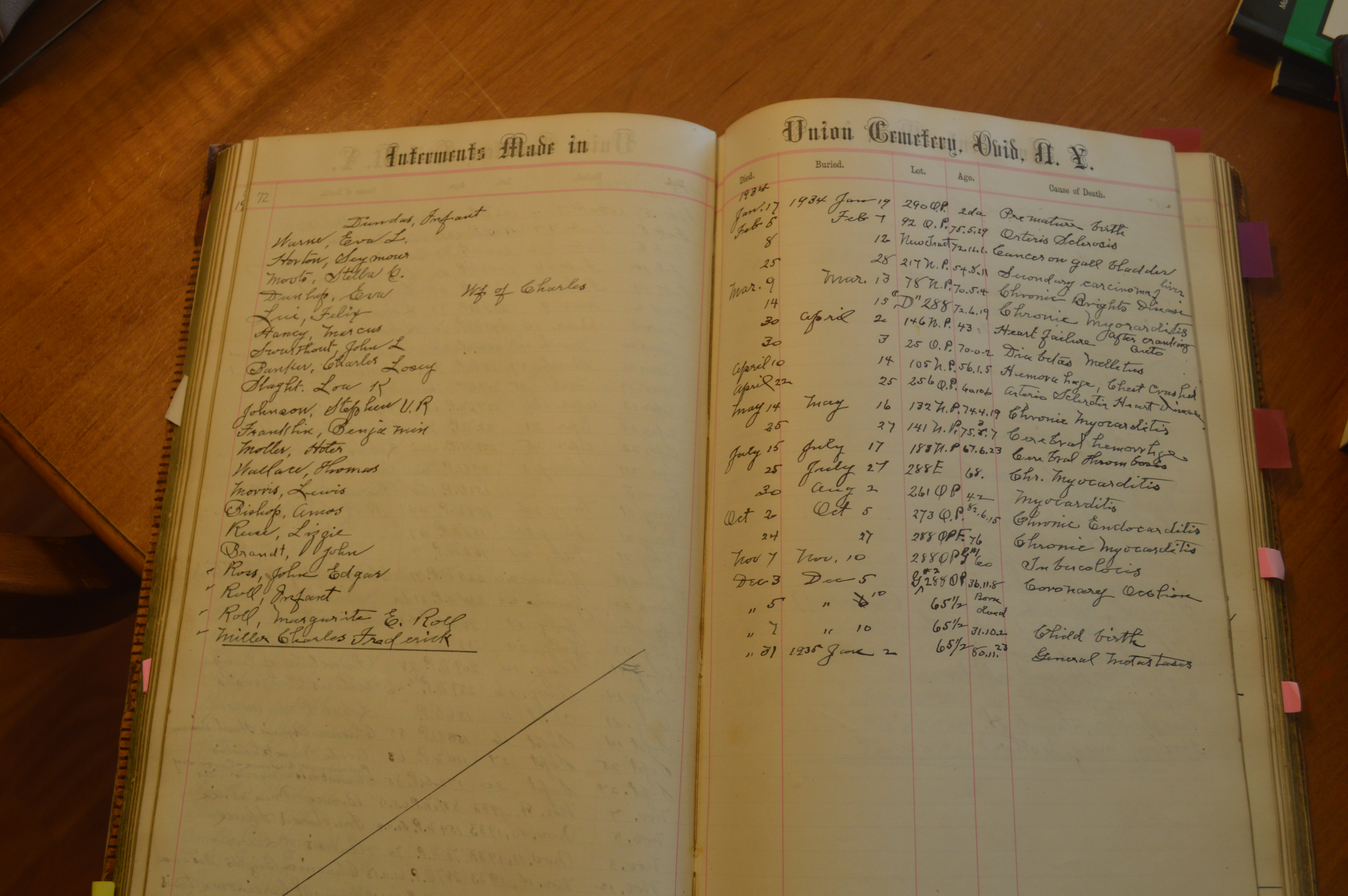 Ovid Union Cemetery Burial Book