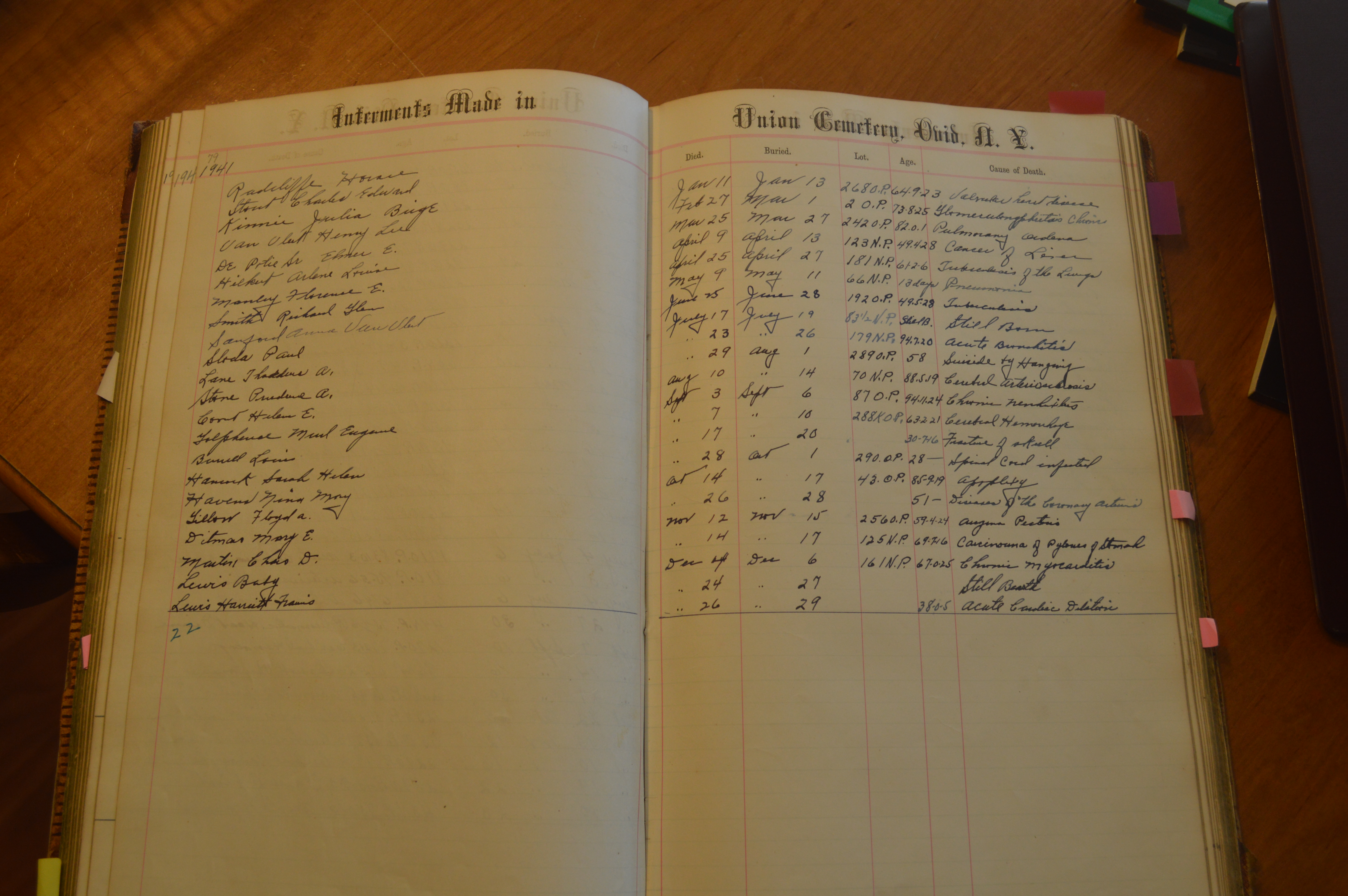 Ovid Union Cemetery Burial Book