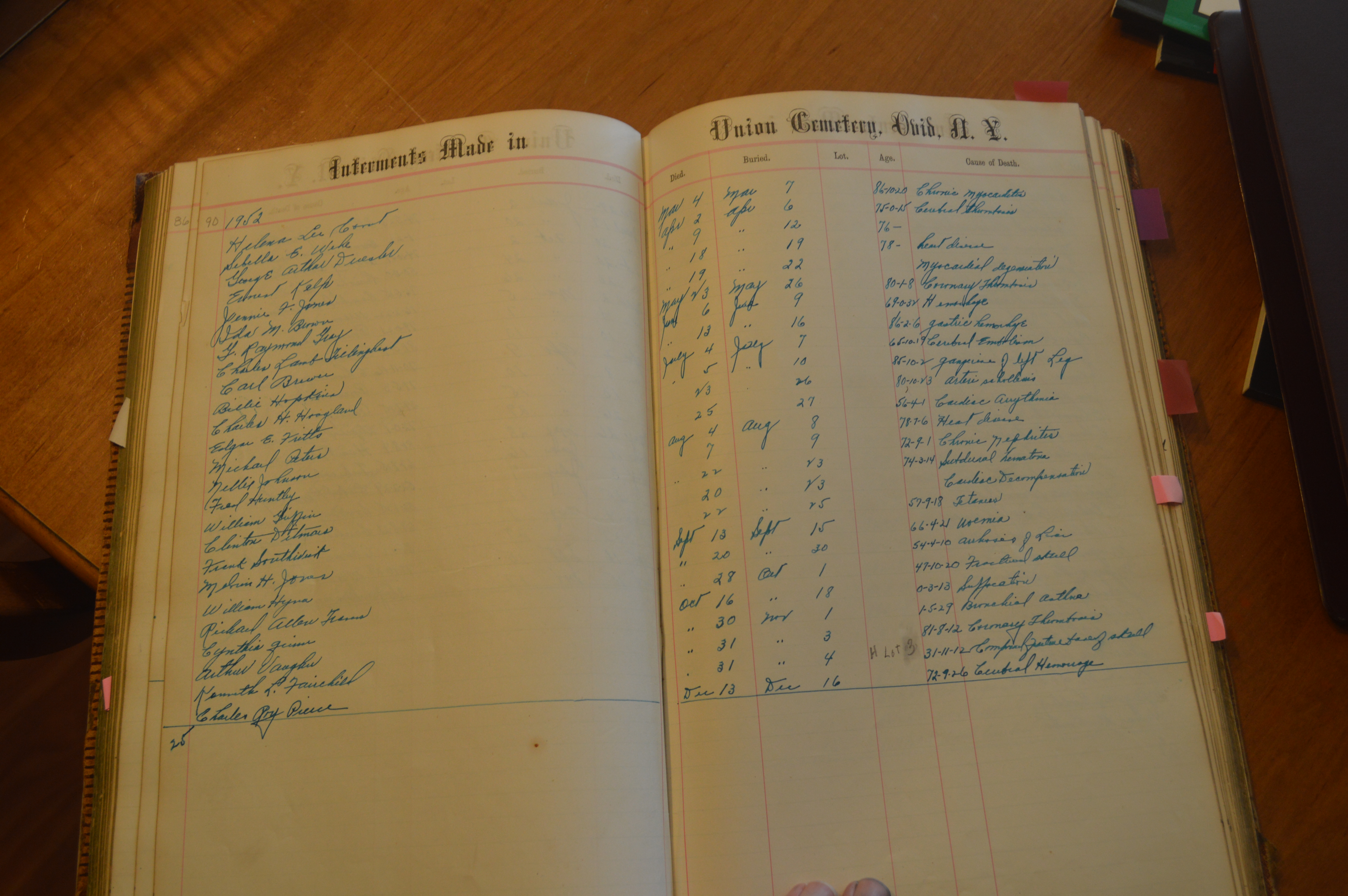 Ovid Union Cemetery Burial Book