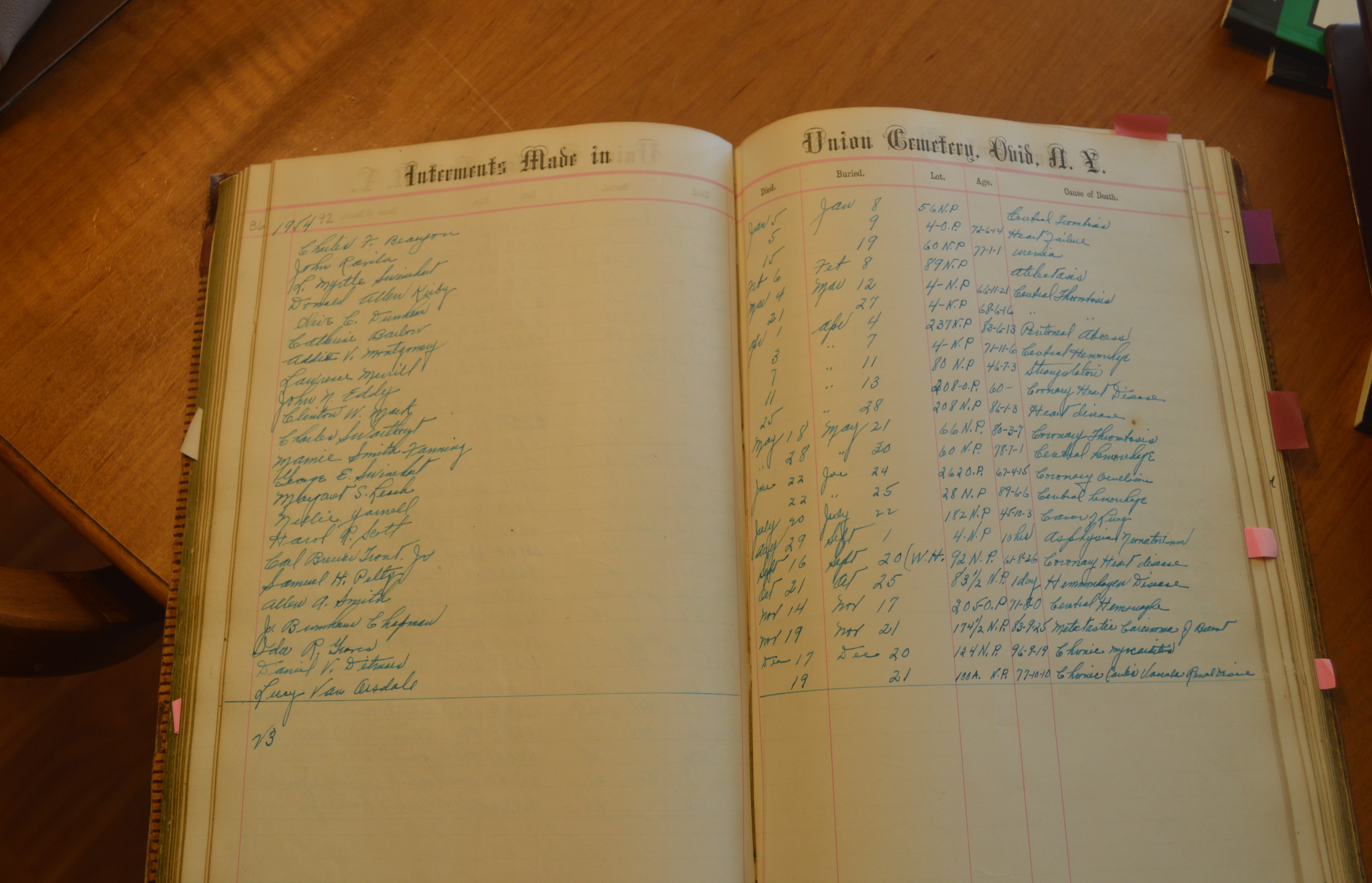 Ovid Union Cemetery Burial Book