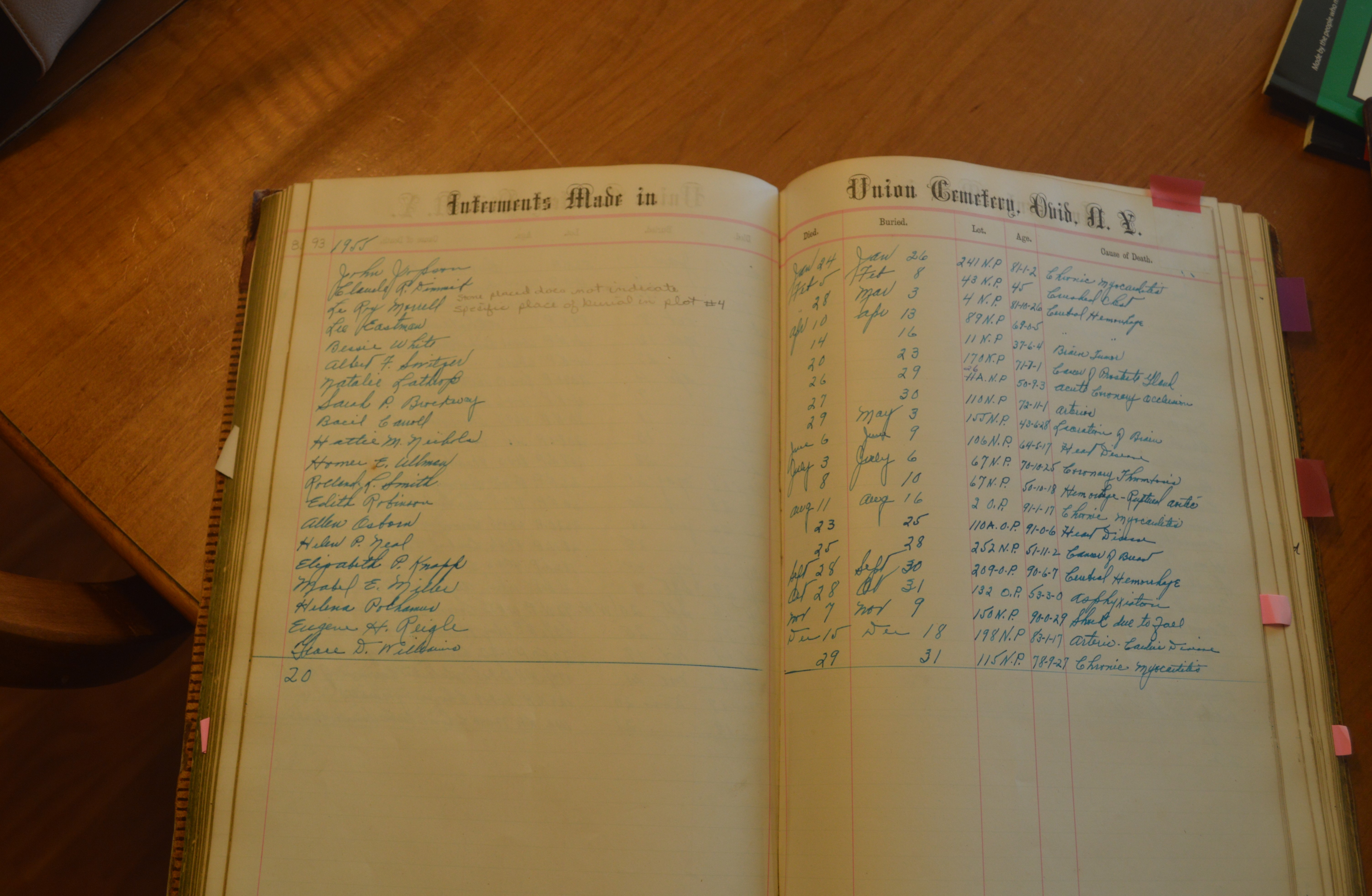 Ovid Union Cemetery Burial Book