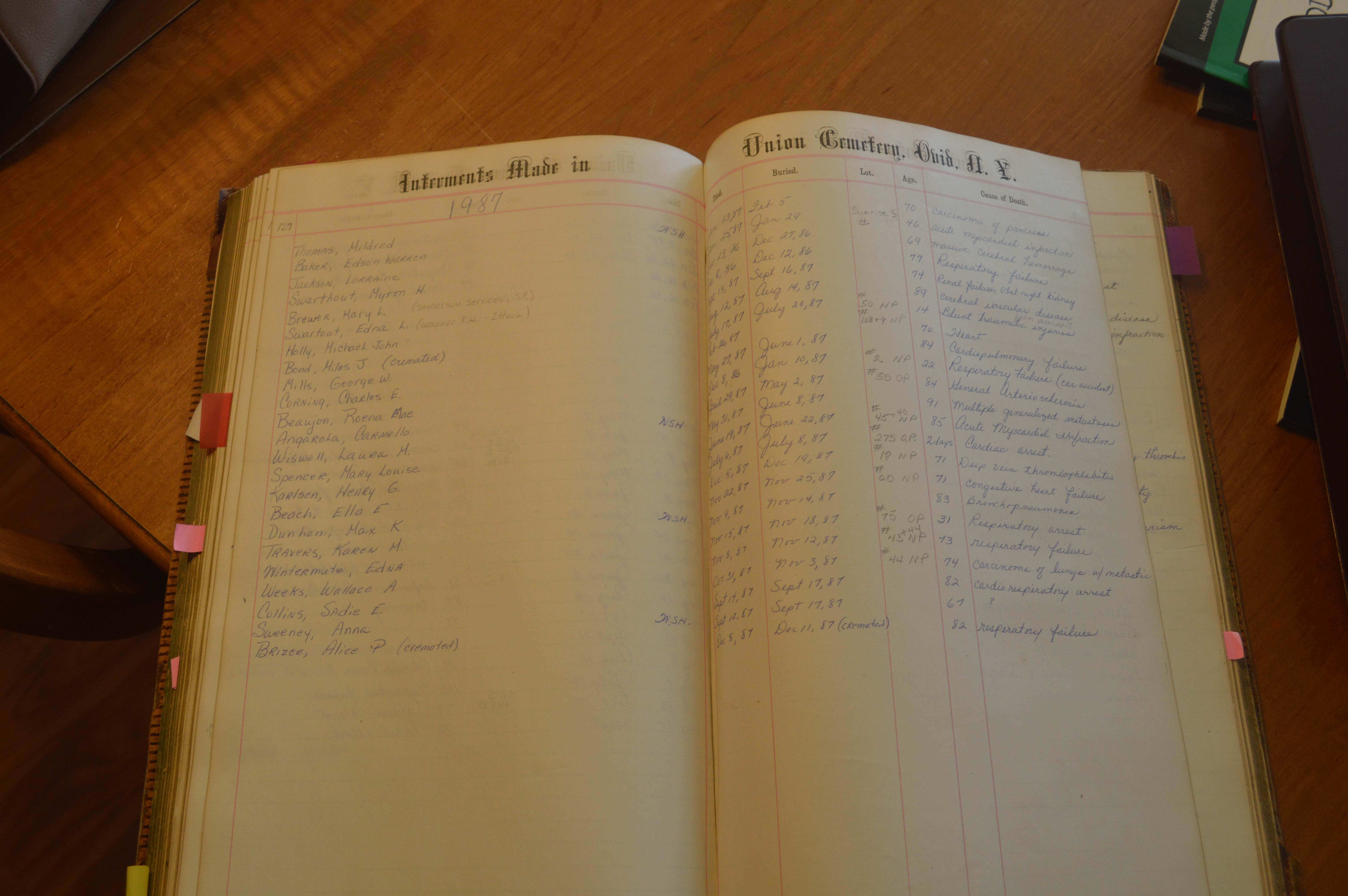 Ovid Union Cemetery Burial Book