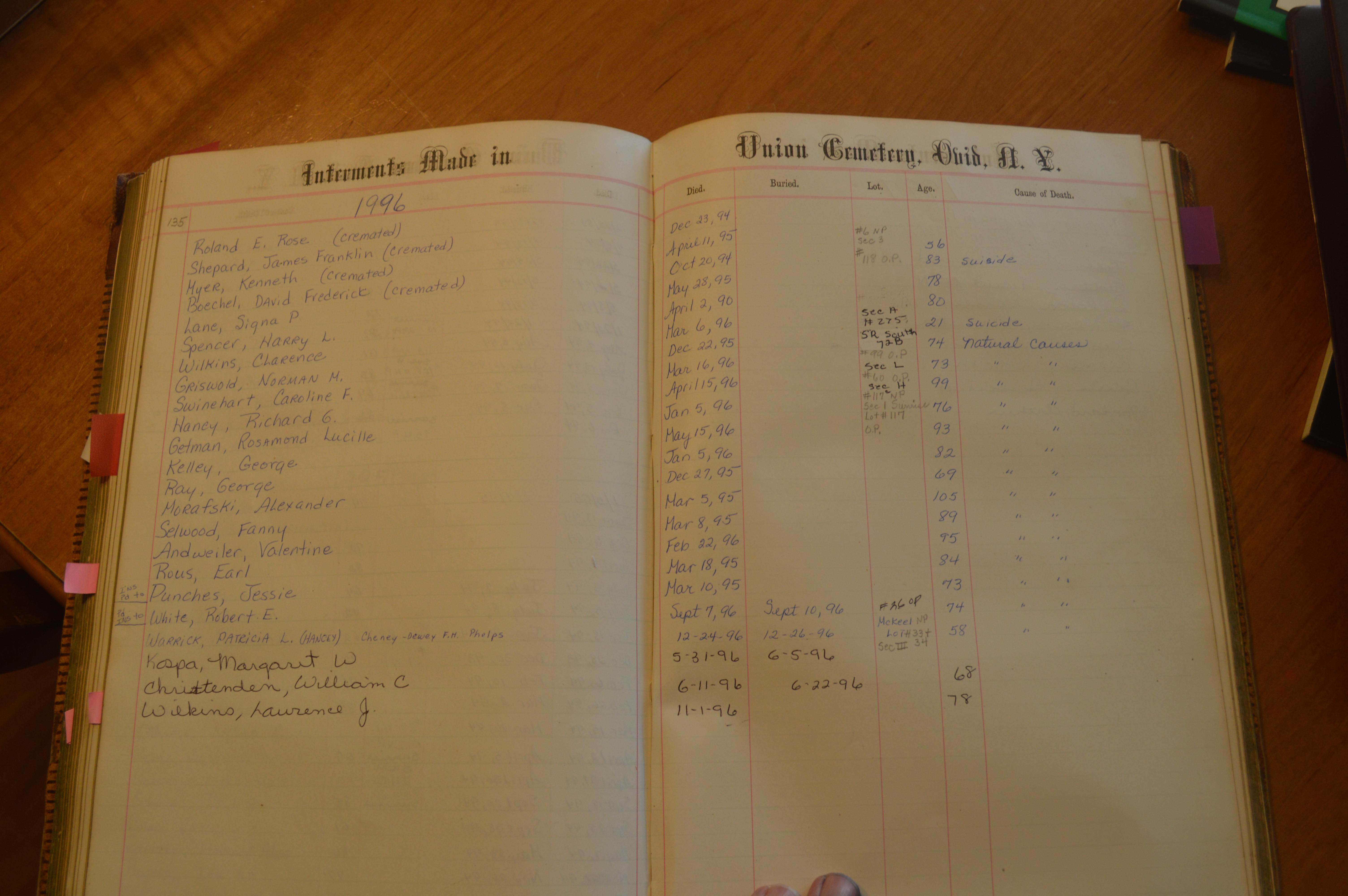 Ovid Union Cemetery Burial Book