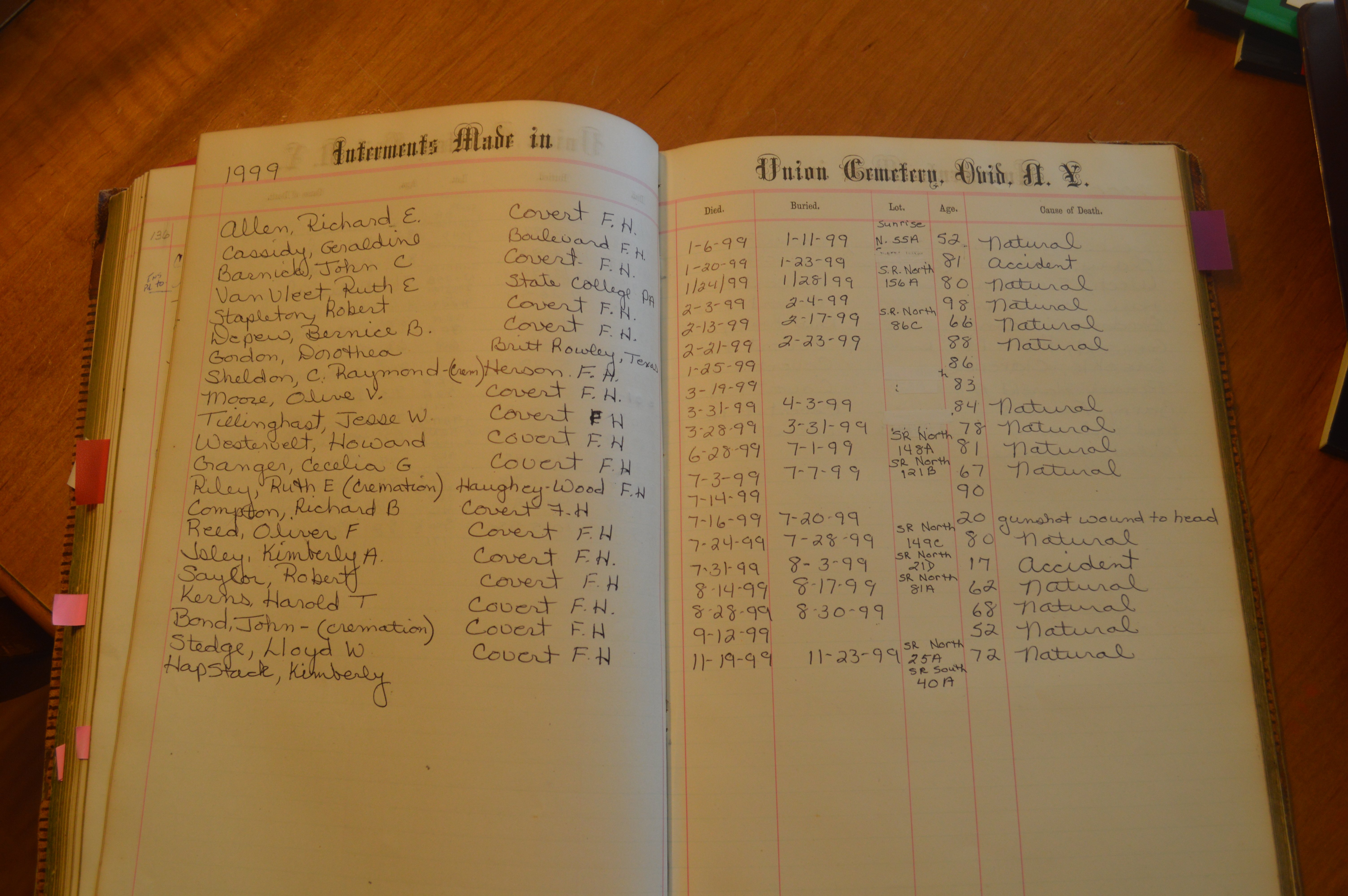 Ovid Union Cemetery Burial Book