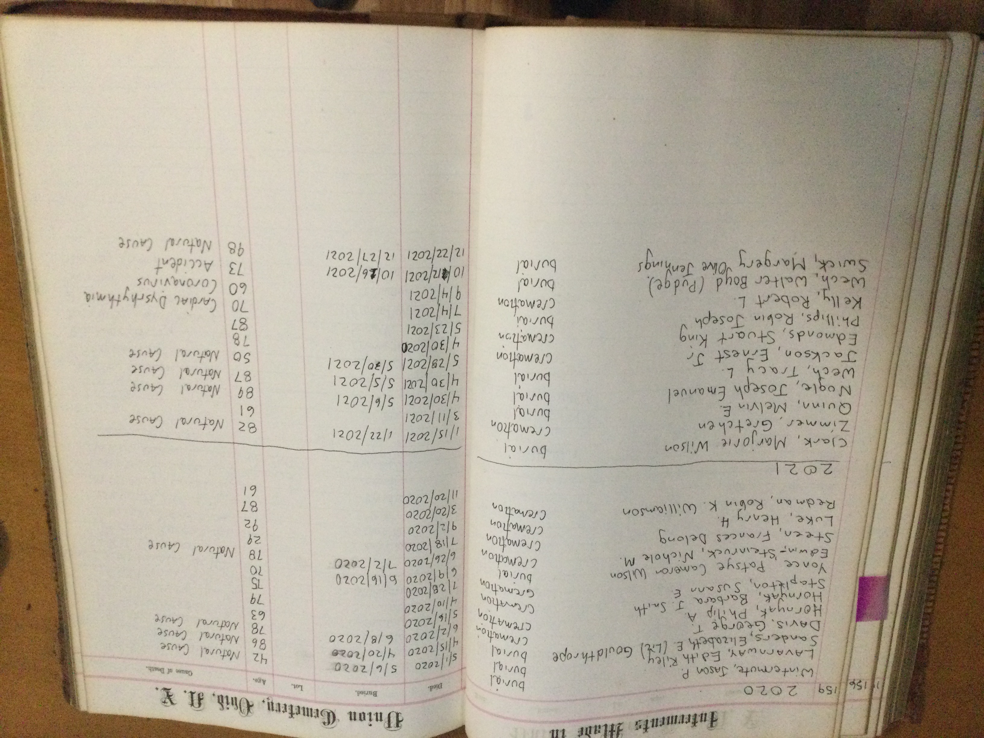 Ovid Union Cemetery Burial Book