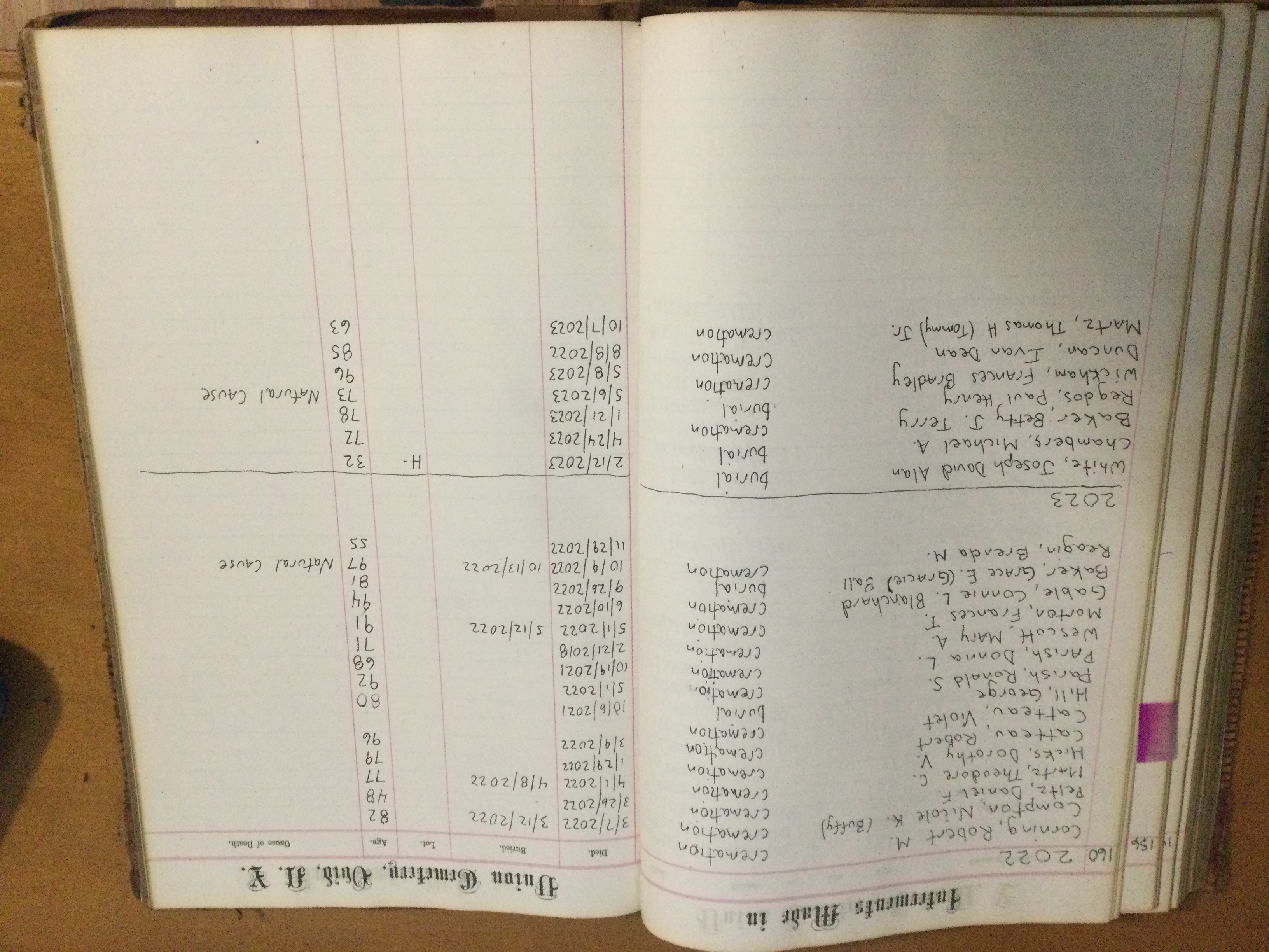 Ovid Union Cemetery Burial Book